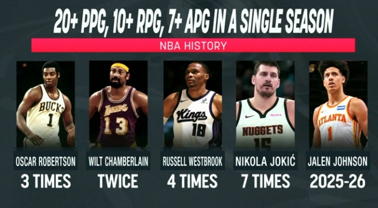 IM体育-赛季场均20+10+7榜:约基奇7次威少4次 大O3次大帅2次 杰伦约有望